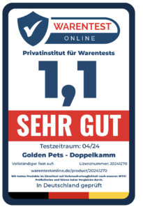 Fazit: Der Golden Pets Doppelkamm für Hunde und Katzen ist ein vielseitiges Werkzeug, das sich für die Pflege von mittel- bis langhaarigen Haustieren eignet. Das Produkt wird mit einem Gratis Pflegehandbuch geliefert und verspricht eine einfache Reinigung sowie effektive Ergebnisse bei der Entfernung von Verfilzungen, lose Fellstücken und Schmutz.