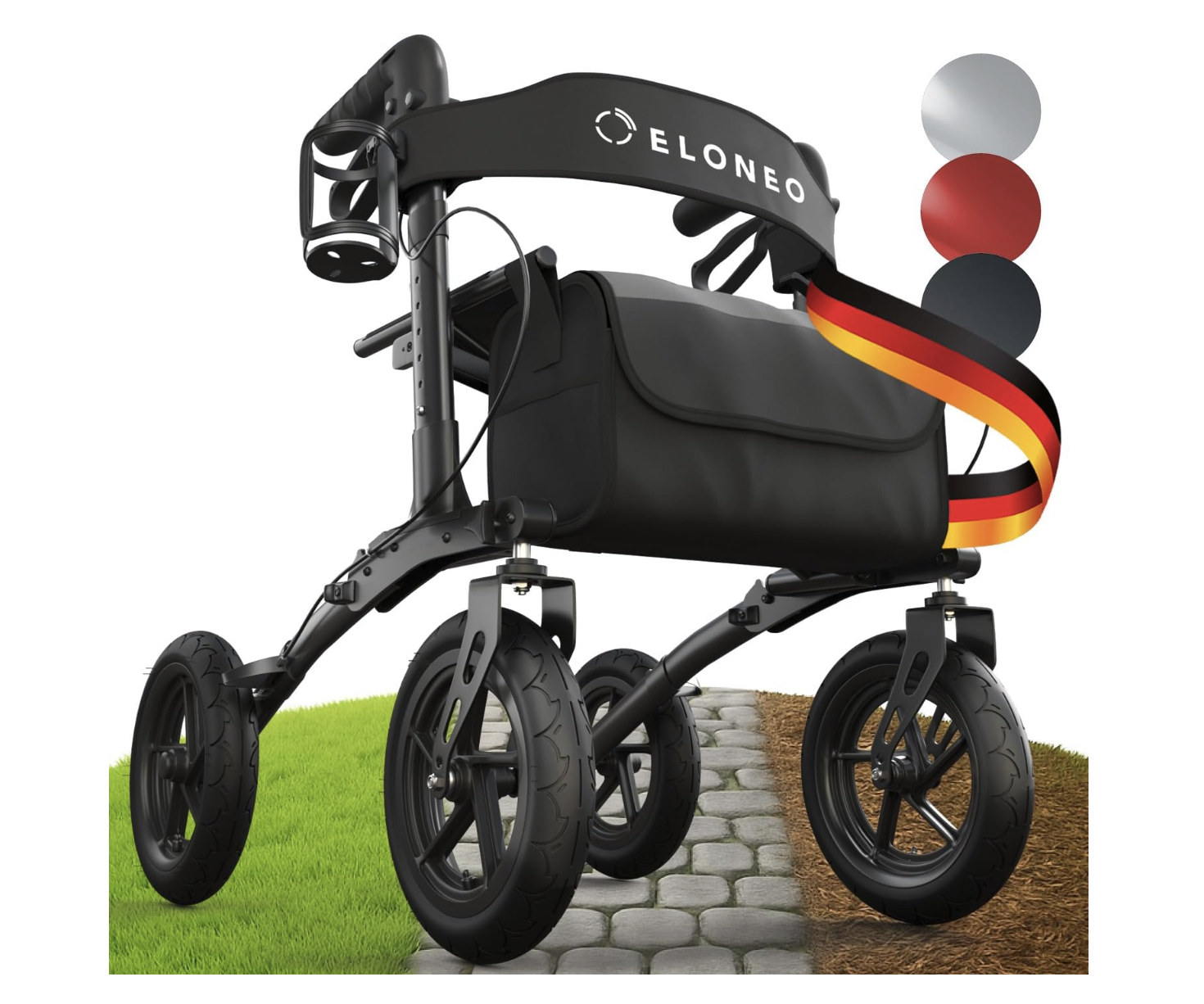 Fazit: Der ELONEO Rollator präsentiert sich als durchdachte, komfortable und robuste Gehhilfe, die speziell für den Außenbereich konzipiert wurde. Besonders hervorzuheben ist die Luftbereifung mit profilierten Rädern, die den Rollator deutlich von vielen herkömmlichen Modellen unterscheidet. Diese Bereifung bietet hervorragende Dämpfungseigenschaften, sodass Fahrten über unebene Wege, Kies, Rasen oder Kopfsteinpflaster angenehm und stabil verlaufen. Der Luftdruck kann über Autoventile individuell angepasst werden, was ein Plus an Komfort und Flexibilität bedeutet – ideal für Nutzerinnen und Nutzer, die häufig im Freien unterwegs sind.