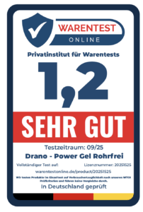 Positiv hervorzuheben ist, dass das Mittel für alle gängigen Rohrarten geeignet ist und dabei materialschonend wirkt, solange es nicht mit empfindlichen Oberflächen wie Aluminium, Emaille, vergoldeten Armaturen oder Toiletten in Kontakt kommt. Der kindersichere Verschluss erhöht zusätzlich die Sicherheit im Haushalt. Ein weiterer Pluspunkt ist die teilweise nachhaltige Verpackung, da die Flasche zu 30 % aus recyceltem Plastik besteht.