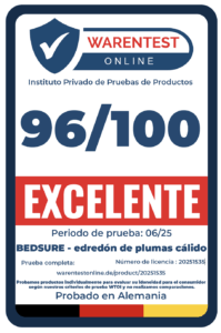 Fazit: Die Bedsure Daunendecke 155×220 cm präsentiert sich als hochwertige und besonders warme Winterbettdecke, die mit einer durchdachten Materialkombination und sorgfältiger Verarbeitung überzeugt. Mit einem hohen Daunenanteil von 90 % und 10 % kleinen Federn liefert die Decke eine exzellente Wärmeisolierung, ohne dabei zu beschweren. Die Füllmenge von 1480 Gramm reiner Naturfüllung sorgt für ein angenehm wärmendes, aber atmungsaktives Schlafklima – ideal für kalte Nächte oder Menschen mit höherem Wärmebedürfnis.