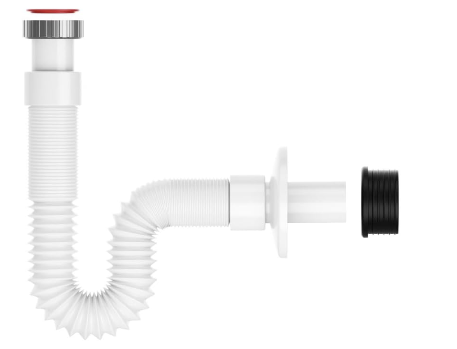 Ein besonderes Highlight ist der im Lieferumfang enthaltene Adapter, der die Nutzung des Siphons auch an Küchenspülen ermöglicht. Dadurch ist der Ablaufschlauch nicht nur für Waschbecken im Bad, sondern ebenso für die Küche vielseitig einsetzbar. Zudem liegt eine passende Gummimanschette (DN 50/32) bei, mit der der Siphon ohne zusätzliche Käufe einfach angeschlossen werden kann – das macht die Installation besonders komfortabel und zeitsparend.