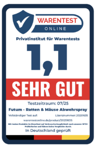 Insgesamt ist das FUTUM Ratten- und Mäuseabwehrspray eine wirksame, natürliche und benutzerfreundliche Lösung zur Prävention und Bekämpfung von Nagetierbefall. Es vereint schnelle Wirkung mit langfristigem Schutz und verzichtet dabei auf schädliche Inhaltsstoffe – eine empfehlenswerte Alternative für alle, die auf tierfreundliche und umweltbewusste Schädlingskontrolle setzen.
