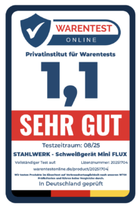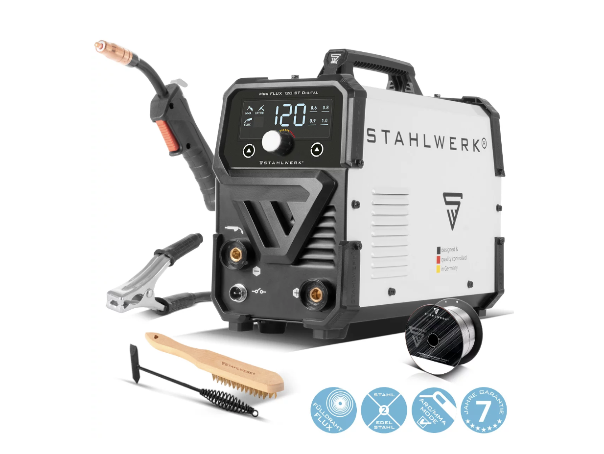 Die kompakten Abmessungen, das geringe Gewicht und der Verzicht auf Schutzgas machen das Gerät besonders für den mobilen Einsatz auf Baustellen, bei Montagearbeiten oder im DIY-Bereich attraktiv. Insgesamt überzeugt das STAHLWERK Mini FLUX 120 ST durch seine vielseitige Einsatzfähigkeit, moderne Technologie, einfache Bedienung und praxisorientierte Ausstattung. Es eignet sich für alle, die ein zuverlässiges, leistungsstarkes und flexibles Schweißgerät suchen, das sowohl Profis als auch Hobbyanwender zufriedenstellt.