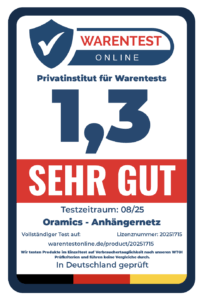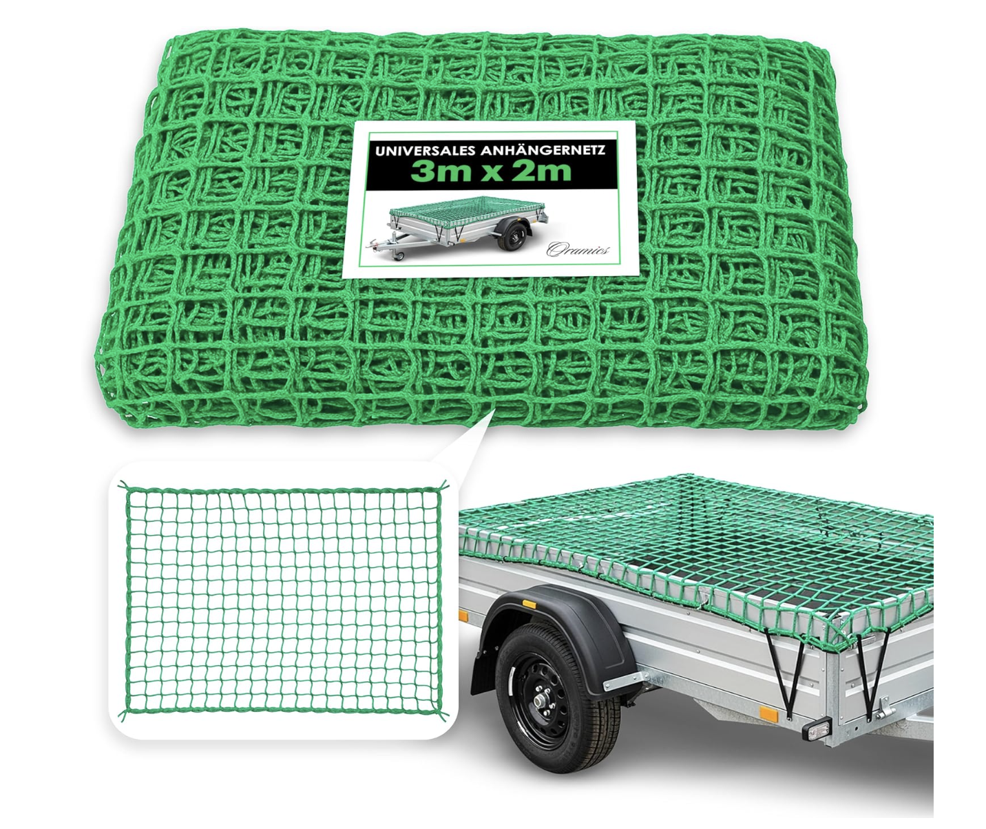 Fazit: Das Oramics Anhängernetz in der Größe 2 x 3 Meter ist ein zuverlässiges Hilfsmittel zur sicheren Ladungssicherung bei Transporten aller Art. Ob beim Umzug, nach dem Baumarktbesuch oder beim Abtransport von Gartenabfällen – das feinmaschige und reißfeste Netz schützt zuverlässig vor Verrutschen oder Herausfallen von Transportgut während der Fahrt.