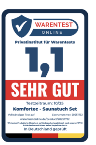 Fazit: Das Komfortec Saunatuch-Set überzeugt durch seine hochwertige Qualität, angenehme Haptik und vielseitige Einsatzmöglichkeiten. Die beiden Saunatücher bestehen aus 100 % Baumwolle in dichter Frottee-Qualität und bieten dadurch ein besonders weiches, flauschiges und hautsympathisches Gefühl. Das Material ist sehr saugfähig und nimmt Feuchtigkeit schnell auf, was es ideal für den Einsatz in der Sauna, im Spa, beim Sport oder auf Reisen macht. Gleichzeitig trocknet das Gewebe rasch, wodurch die Handtücher stets hygienisch und angenehm frisch bleiben.