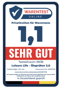 Fazit: Der Leisure Life® Premium Ölsprüher 2.0 überzeugt durch eine hochwertige Verarbeitung, durchdachte Funktionen und vielseitige Einsatzmöglichkeiten. Im Gegensatz zu herkömmlichen Ölspendern erzeugt er dank optimierter Düse einen feinen, gleichmäßigen Sprühnebel anstelle eines punktuellen Ölstrahls. Dies ermöglicht eine besonders sparsame und kontrollierte Dosierung – ideal für die Zubereitung von Salaten, für den Einsatz im Airfryer, beim Grillen oder im Backofen. Gerade beim kalorienbewussten Kochen leistet der Sprüher wertvolle Dienste, da weniger Öl für ein gleichmäßiges Ergebnis benötigt wird.