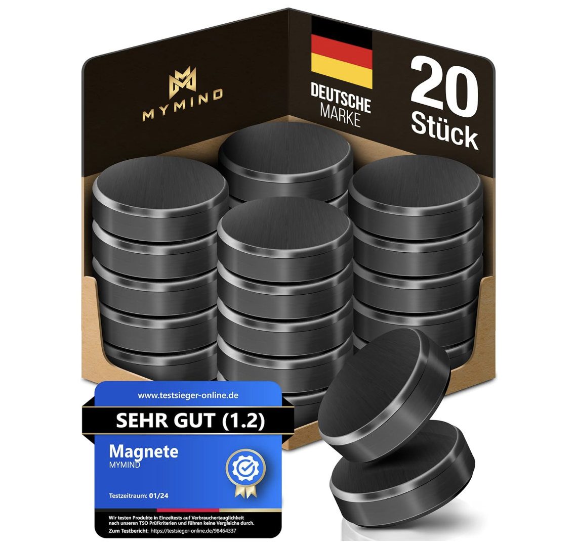 Als deutsche Qualitätsmarke steht MYMIND für zuverlässige Produkte, auf die bereits zehntausende zufriedene Kunden vertrauen. Die Kombination aus starker Haftkraft, Schutz der Oberflächen und hoher Verarbeitungsqualität macht diese Magnete zu einem langlebigen, praktischen und vielseitigen Begleiter im Alltag. Hinweis: Die Verpackung kann von den abgebildeten Produktfotos abweichen.