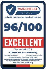 Fazit: Die Flaschentaschen von ATHLON TOOLS sind die ideale Lösung, um Flaschen aller Art sicher, komfortabel und organisiert zu transportieren. Jede Tasche verfügt je nach Modell über sechs oder neun einzeln voneinander getrennte Fächer, in denen Flaschen unterschiedlicher Größe – von 0,3 bis hin zu 1,5 Litern – stabil stehen. Dank der verstärkten Trennwände bleibt jede Flasche fest an ihrem Platz, ohne zu klirren oder gegeneinander zu stoßen. Das sorgt nicht nur für Ruhe beim Tragen, sondern auch für optimalen Schutz von Glasflaschen wie Wein, Öl, Bier oder Mineralwasser.