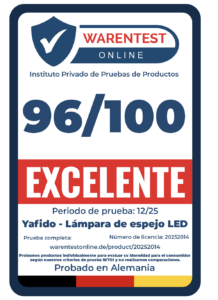 Fazit: Die Yafido 40 cm LED-Spiegelleuchte ist als vielseitige Badbeleuchtung konzipiert und richtet sich an Nutzer, die Wert auf flexible Lichtgestaltung, gleichmäßige Ausleuchtung und einfache Installation legen. Die Leuchte eignet sich insbesondere für die Montage über Spiegelschränken oder Waschtischen und unterstützt eine präzise Anwendung bei Make-up, Rasur oder allgemein für stimmungsvolle Badezimmerbeleuchtung.