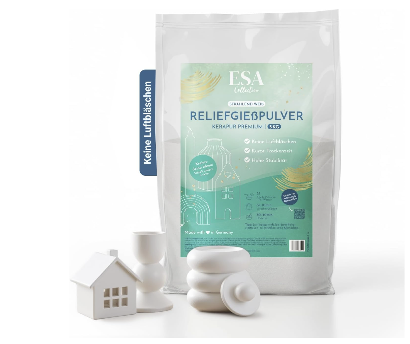 Fazit: Das Reliefgießpulver von ESACollection in der 5-kg-Packung überzeugt durch seine herausragende Qualität und vielseitige Einsatzmöglichkeiten für kreative DIY-Projekte. Die besonders feine, bläschenfreie Rezeptur sorgt dafür, dass sich das Pulver gleichmäßig mit Wasser vermischt und keine Luftblasen entstehen – so gelingen glatte, professionelle Gießobjekte, die sofort durch ihre Detailgenauigkeit und Ästhetik bestechen. Der extra hohe Weißgrad des Pulvers ermöglicht strahlende Kunstwerke, die sich hervorragend bemalen, dekorieren oder weiterverarbeiten lassen.