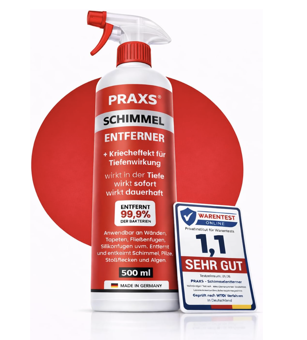 Insgesamt überzeugt der PRAXS® Schimmelentferner durch seine starke Reinigungsleistung, vielseitige Einsetzbarkeit und schnelle Wirkung. Er eignet sich besonders für hartnäckige Schimmelprobleme im Haushalt, bei denen mildere Mittel an ihre Grenzen stoßen, und bietet eine zuverlässige Lösung für Bad, Wand und andere feuchte Bereiche.