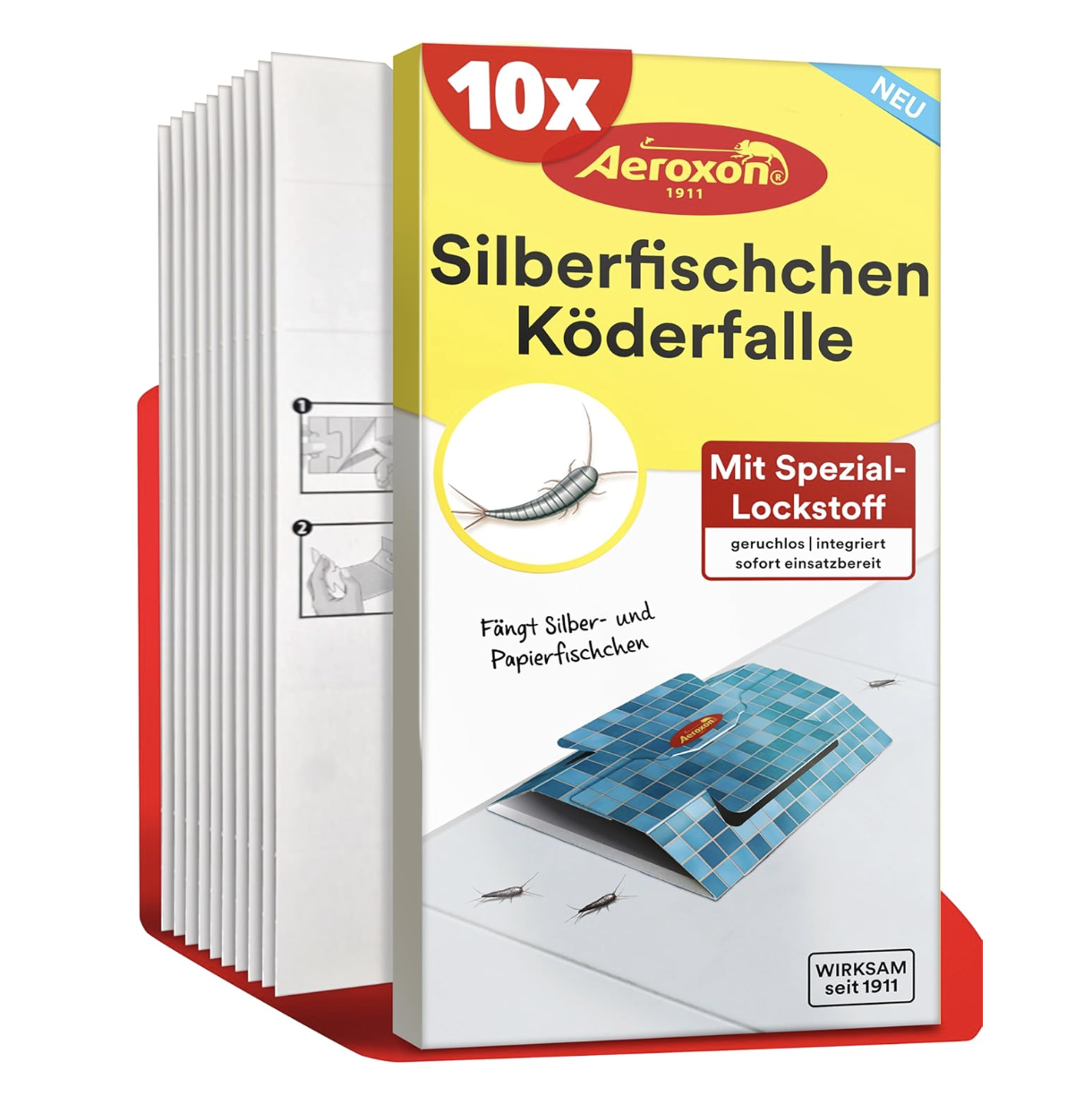 Fazit: Die Aeroxon Silberfischfalle 10er Pack bietet eine effektive, insektizidfreie Lösung zur Bekämpfung von Silberfischen und Papierfischen in Ihrem Zuhause. Die hochwirksamen Klebefallen fangen die Insekten zuverlässig, denn dank der starken Klebeflächen bleiben Silberfische und Papierfische sofort haften, ohne entkommen zu können.
