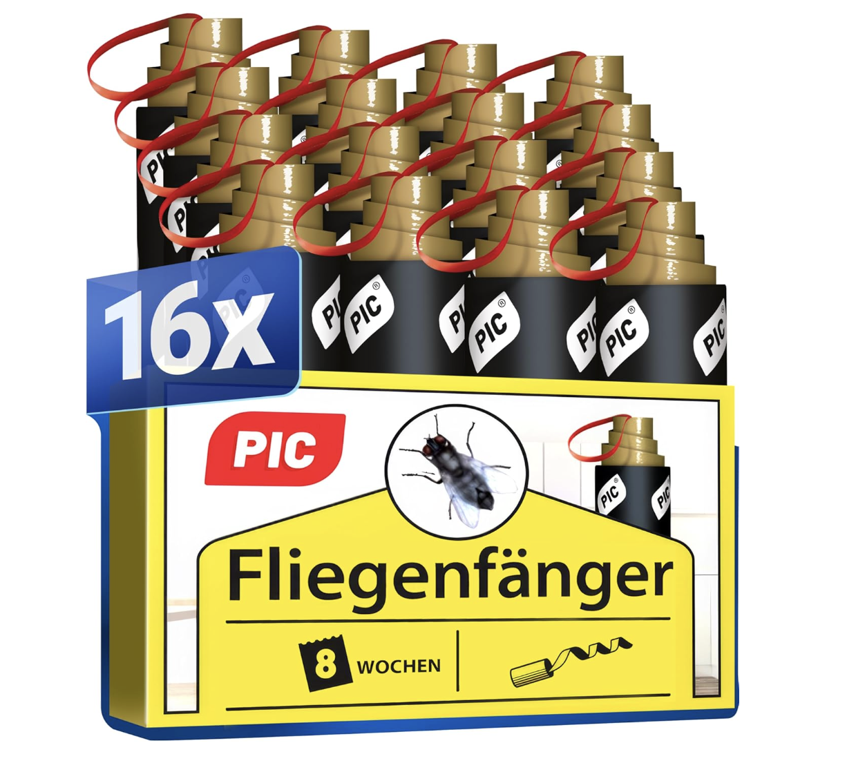 Fazit: Die PIC Fliegenfänger 16x bieten eine effektive, umweltfreundliche und giftfreie Lösung zur Bekämpfung von Fruchtfliegen, Obstfliegen und anderen Fliegen im Innenbereich. Die Fallen bestehen aus Klebestreifen in Spiralform, die mit für Fliegen attraktiven Duftstoffen versehen sind. Durch die spezielle Leimzusammensetzung aus Naturprodukten bleiben die Fliegen zuverlässig an der Falle haften, ohne den Einsatz von Chemikalien.