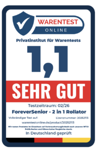 Insgesamt bietet der ForeverSenior 2-in-1 Rollator eine gelungene Kombination aus Mobilität, Komfort und Flexibilität. Er eignet sich besonders für Seniorinnen und Senioren oder Personen in Reha-Phasen, die im Alltag zwischen selbstständigem Gehen und geschobenem Transport wechseln möchten und dabei Wert auf Stabilität, durchdachte Ausstattung und eine hochwertige Verarbeitung legen.