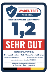Fazit: Die Forever Senior Toilettensitzerhöhung mit 5 cm Erhöhung macht insgesamt einen funktionalen und alltagstauglichen Eindruck und richtet sich gezielt an Menschen, die beim Hinsetzen und Aufstehen zusätzliche Unterstützung benötigen. Durch die leicht erhöhte Sitzposition wird die Belastung für Knie und Hüfte spürbar reduziert, was insbesondere für Senioren oder Personen mit eingeschränkter Mobilität eine deutliche Erleichterung im Alltag darstellen kann.