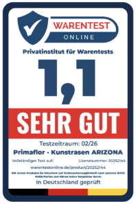 Fazit: Der Primaflor Kunstrasen ARIZONA 37mm präsentiert sich als hochwertiger und vielseitig einsetzbarer Outdoor-Bodenbelag für Garten, Terrasse und Balkon. Mit einer Florhöhe von 37 mm wirkt das Kunstgras besonders dicht und naturnah, wodurch eine realistische Rasenoptik entsteht, die echtem Naturrasen optisch sehr nahekommt. Die Struktur der Fasern sorgt für ein harmonisches Gesamtbild und eine angenehm volle Oberfläche.