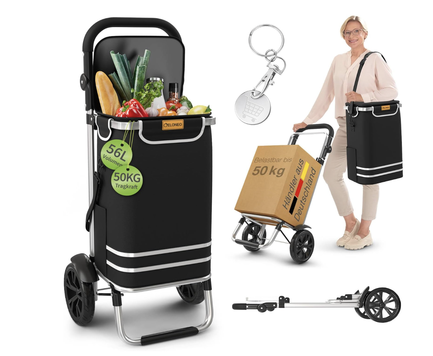 Insgesamt überzeugt der ELONEO Einkaufstrolley durch seine Multifunktionalität, das großzügige Platzangebot und die praktische Klappfunktion. Er bietet eine flexible und alltagstaugliche Unterstützung für Einkäufe und Transporte verschiedenster Art.