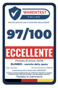 Fazit: Der ELONEO Einkaufstrolley 3in1 präsentiert sich als durchdachte und vielseitige Lösung für den Alltag. Dank seines 3-in-1-Konzepts lässt er sich flexibel als klassischer Einkaufstrolley, als Sackkarre oder als Umhängetasche verwenden. Mit einem Eigengewicht von nur 2,3 kg bleibt er angenehm leicht und komfortabel im Handling, ohne dabei an Stabilität einzubüßen.
