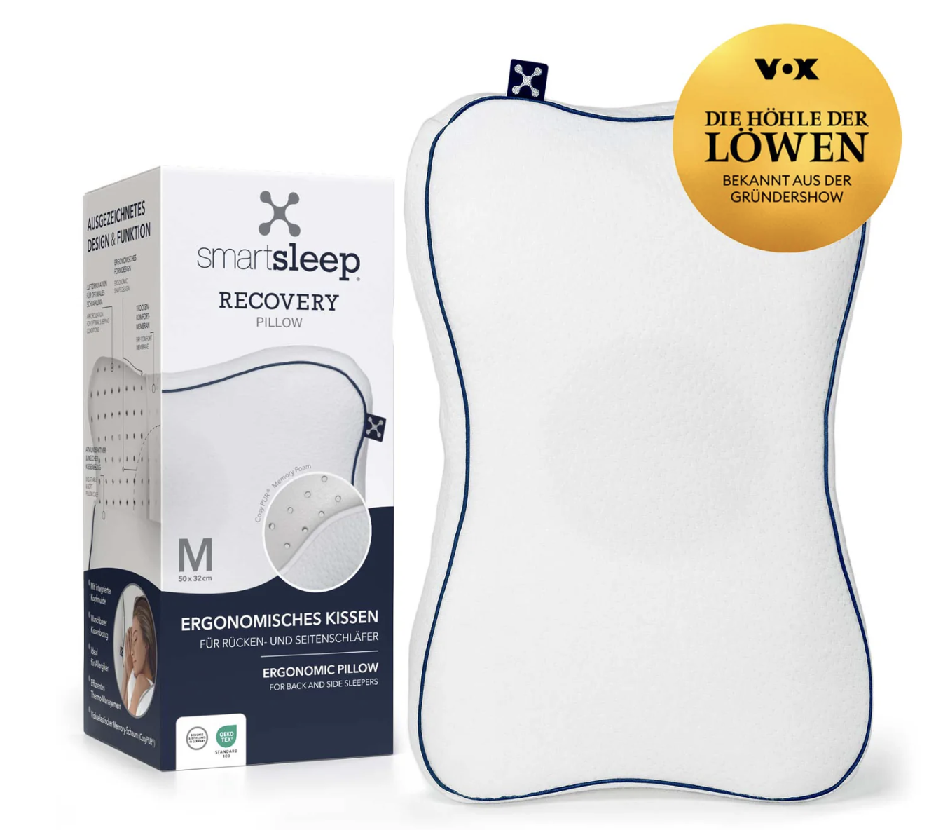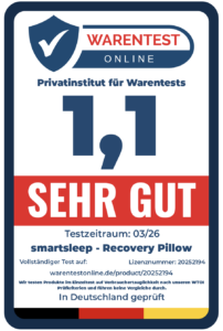 Fazit: Das smartsleep RECOVERY PILLOW präsentiert sich als ergonomisch durchdachtes Nackenkissen, das gezielt auf eine bessere Schlafhaltung und Entlastung im Nackenbereich ausgelegt ist. Der Fokus liegt klar auf Unterstützung und Anpassungsfähigkeit, was besonders für Menschen mit Verspannungen oder unruhigem Schlaf relevant sein kann.
