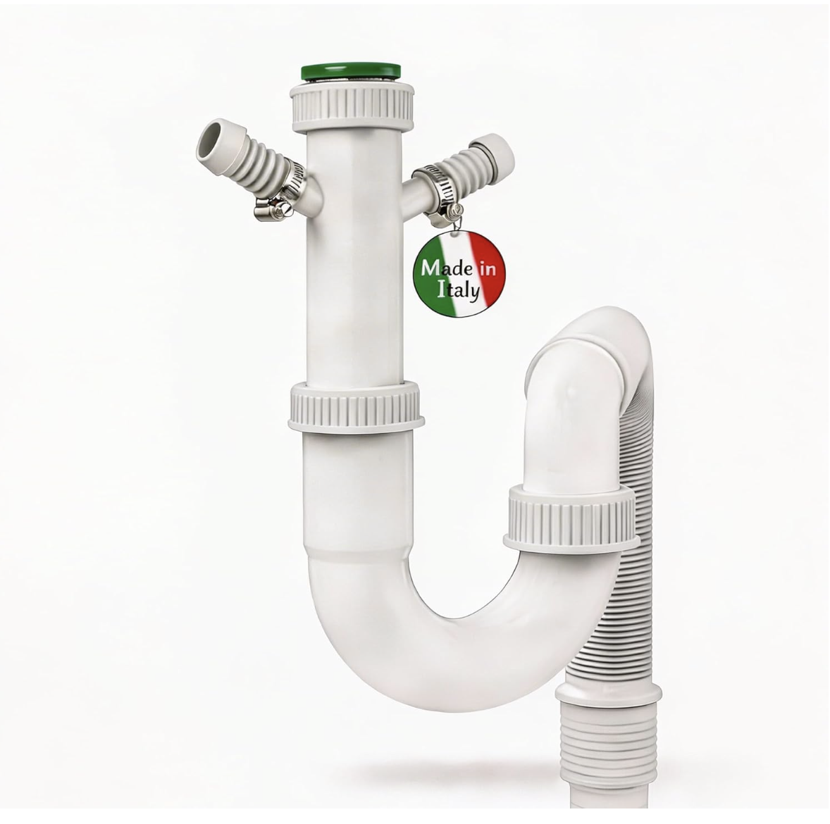Fazit: Der flexible Röhrensiphon 1 1/2″ mit zwei Geräteanschlüssen präsentiert sich als durchdachte und vielseitige Lösung für den Küchenbereich, insbesondere wenn mehrere Geräte wie Spül- und Waschmaschine angeschlossen werden sollen. Durch die universelle Auslegung eignet sich das Set gut für unterschiedliche Einbausituationen und ist besonders hilfreich bei beengten Platzverhältnissen unter der Spüle.