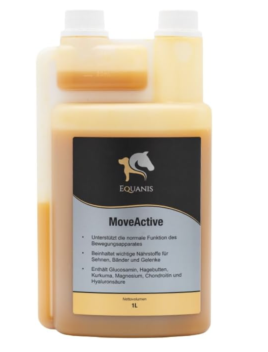 Fazit: Equanis MoveActive ist ein flüssiges Ergänzungsfuttermittel für Pferde, das auf die Unterstützung des Bewegungsapparates ausgerichtet ist. Die Rezeptur kombiniert Glucosamin und MSM in flüssiger Form, was eine einfache Dosierung und Verabreichung über das tägliche Futter ermöglicht. Gerade bei Pferden, die Pulver oder Pellets schlecht annehmen, kann die flüssige Darreichungsform ein praktischer Vorteil sein.